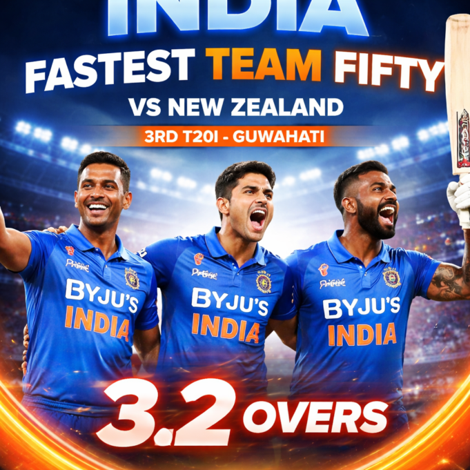 गुवाहाटी के बरसापारा क्रिकेट स्टेडियम में रविवार, 25 जनवरी 2026 को भारत ने न्यूजीलैंड के खिलाफ तीसरे टी20 अंतरराष्ट्रीय में अभूतपूर्व बल्लेबाज़ी करते हुए नया विश्व रिकॉर्ड बनाया। भारतीय टीम ने महज़ 3.1 ओवर में 50 रन पूरे कर टी20I इतिहास की सबसे तेज़ टीम फिफ्टी दर्ज की।